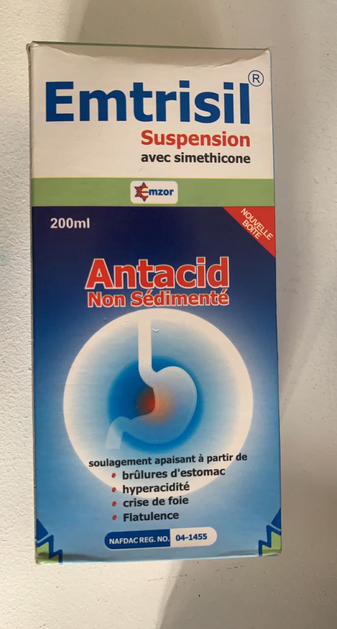 Emtrilsil is an antacid and antiflatulent medication. It works by neutralizing stomach acid and hence effective in the management of symptoms associated with ulcer